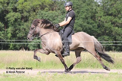 Afgelopen weekend vond op Stoeterij de Breidablik in Oirschot de NSIJP FEIF-keuring onder het zadel plaats. Juryleden waren Heiðrun Sigurðardottir (IS) en Tom Buijtelaar (NL), met Barbara Frische (DE) als hoofdjurylid. Lang bleef ongewis hoeveel paarden er zouden komen, maar uiteindelijk namen 22 paarden, waarvan 1 futurity/try-out, deel aan deze keuring. Om het programma op zaterdag te ontlasten werd vrijdagavond 14 juni de veterinaire check van de hengsten en de exterieurmetingen uitgevoerd. Of we de van te voren aangegeven aanvangstijd gingen halen was nog wel even spannend, omdat door de luchtmacht dagen, een concert van Guus Meeuwes en een wegafsluiting de wegen richting Brabant bomvol stonden. Maar ondanks de files lukte het toch om tijdig te beginnen. Ringmeester René de Vink en jurylid Tom Buijtelaar kregen zelfs nog even de gelegenheid om een bord heerlijk stoofvlees van Niek van Nunen leeg te eten, omdat veearts Miriam van Poppel als eerste kon beginnen. De vet-check en metingen verliepen voorspoedig. Om half 10 waren alle paarden gedaan en kon iedereen na even gezellig napraten richting hotel/huis of camper.